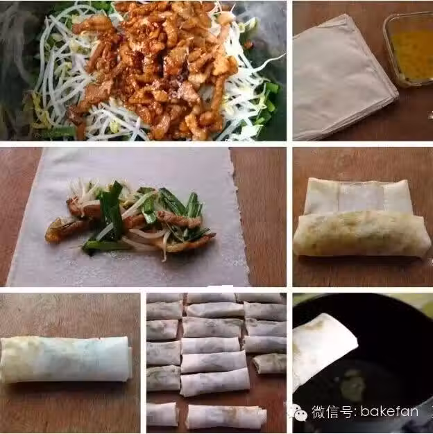 炸的火候要掌握好,溫油的話容易春卷內部吸進去很多油,會很膩的。因為餡兒是熟的,所以外皮金黃就可以了。