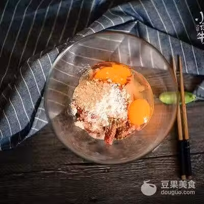 1、將豬肉切成小拇指一樣粗細的長條,加入白糖,生抽,白鬍椒粉、花椒油拌勻,腌制30分鐘。 然後加入雞蛋、紅薯粉和麵粉攪拌均勻調成糊狀,待用。