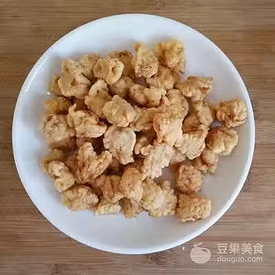 8、將油溫再次燒熱,下入裡脊肉進行復炸。