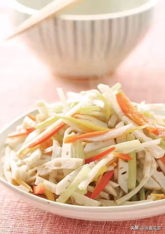 1 蓮藕洗凈切絲,放入沸水中略汆燙。