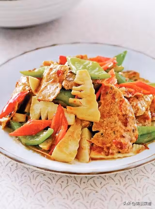 素肉排 150 克,青椒片 30 克,竹筍片 20 克,紅辣椒片 5 克,薑片 10 克,水 80 毫升