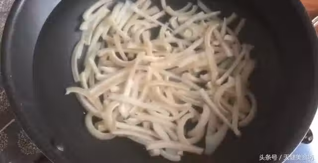 豬皮清洗乾淨之後,撈起瀝干水分,然後起鍋,把豬皮放入鍋中,加入比豬皮多三倍量的清水,加入1茶匙的食鹽,然後蓋上鍋蓋,大火煮沸,水煮沸之後轉成小火燜煮1個小時!