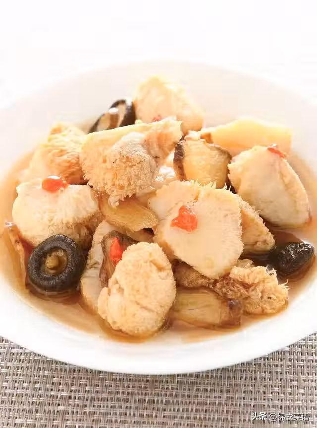 猴頭菇 50 克,當歸 5 克,枸杞子 3 克,薑片 15 克,泡發香菇 6 朵,素高湯400 毫升