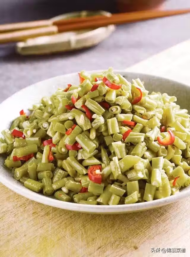 酸豆角 400 克,紅辣椒 60 克,姜 20 克