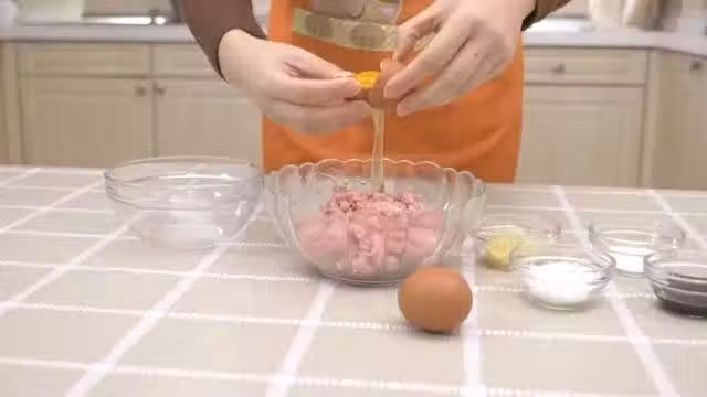 3、加入一些蔥薑末,加入少許鹽,加入白砂糖,再加入醬油,配料加入後(不分先後順序)開始按一個方向攪拌。