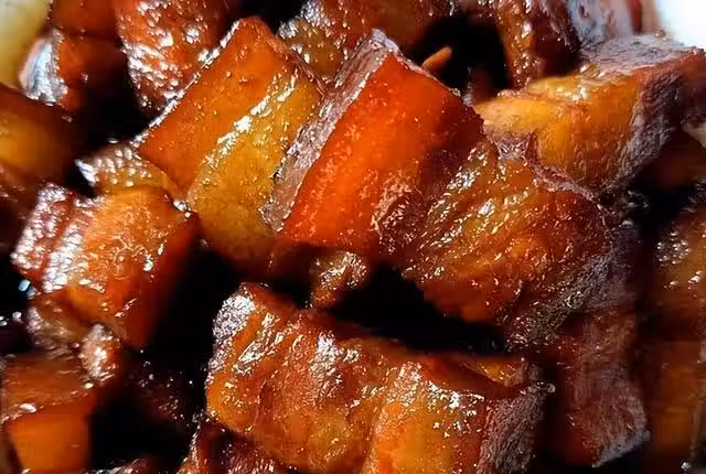 轉小火燉煮40-50分鐘,直到五花肉變得酥爛,湯汁濃稠。最後,可以根據個人口味調整味道,撒上一些蔥花作為裝飾。
