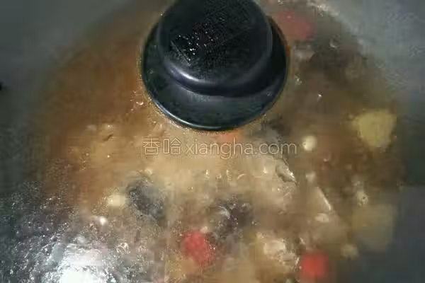 6.等到還剩一點點湯汁的時候,再把腐竹丟進去一起翻炒一下,並加入一點點鹽,醬油,蓋上鍋蓋用小火一起燜5分鐘左右。
