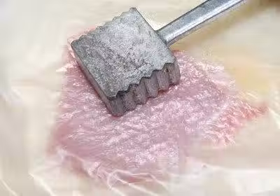 1、首先把豬裡脊肉用塑膠袋包裹,以肉錘拍打豬排雙面讓豬肉斷筋,以咖哩粉、鹽、白鬍椒粉、米酒醃30分鐘入味備用即可;