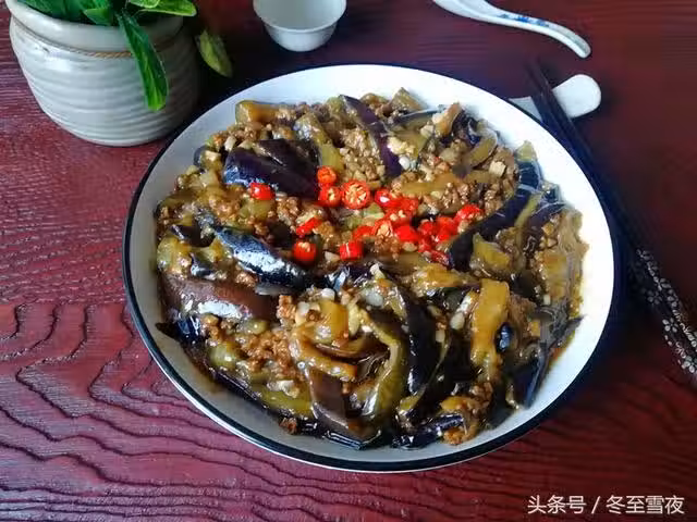 【肉末茄條】材料:茄子4個、豬肉150克、小米辣2個、油鹽適量、蔥1段、姜1片、大蒜3瓣、料酒1湯匙、紅燒醬油1/2湯匙、水澱粉適量、做法: