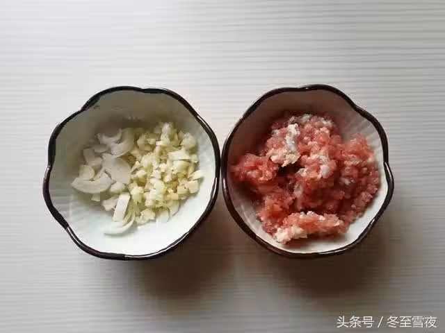 3.期間,將豬肉切末,蔥切蔥花,姜切末、大蒜切末