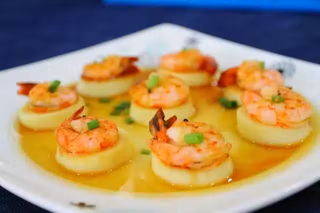 玉子豆腐1袋、鮮蝦8個、香蔥2根、料酒幾滴、黑胡椒粉少許、鹽少許、生抽1勺、香油少許、白砂糖少許、香醋幾滴