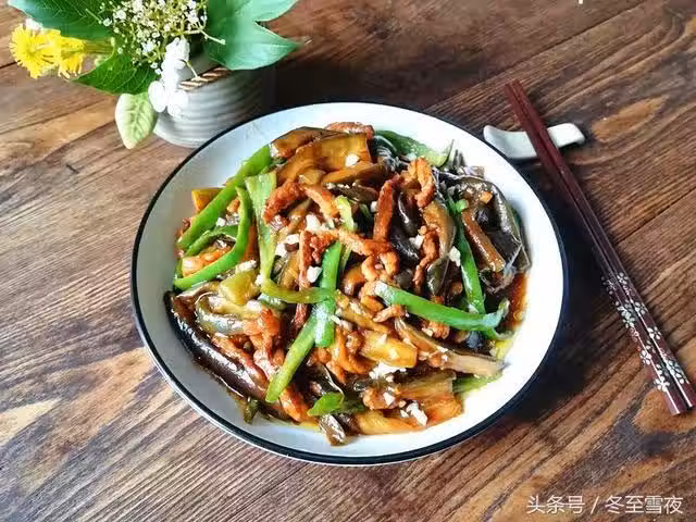 小貼士:茄子切好後,加上少許鹽,拌勻,腌制10分鐘,腌制出水,這樣炒制時茄子就不會吸收太多的油,也很容易炒制,吃起來就不會油膩,炒好後勾芡使菜肴顏色紅亮,有食慾,吃茄子最好不要去皮,因為茄子皮裡面含有維生素B