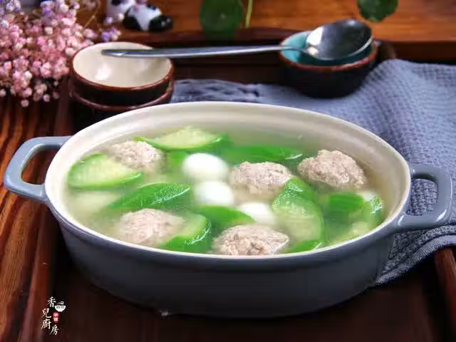 三伏天的天氣,真的會讓人覺得吃什麼都沒胃口,吃魚吃肉不如來一碗這樣的湯吧。單一的絲瓜入湯,鮮味不夠,營養也不全面,所以我加了幾個鵪鶉蛋,用豬肉末做了肉丸子,絲瓜的鮮嫩,和鵪鶉蛋,豬肉融合一起之後,原汁原味的鮮美,而且也豐富了營養。
