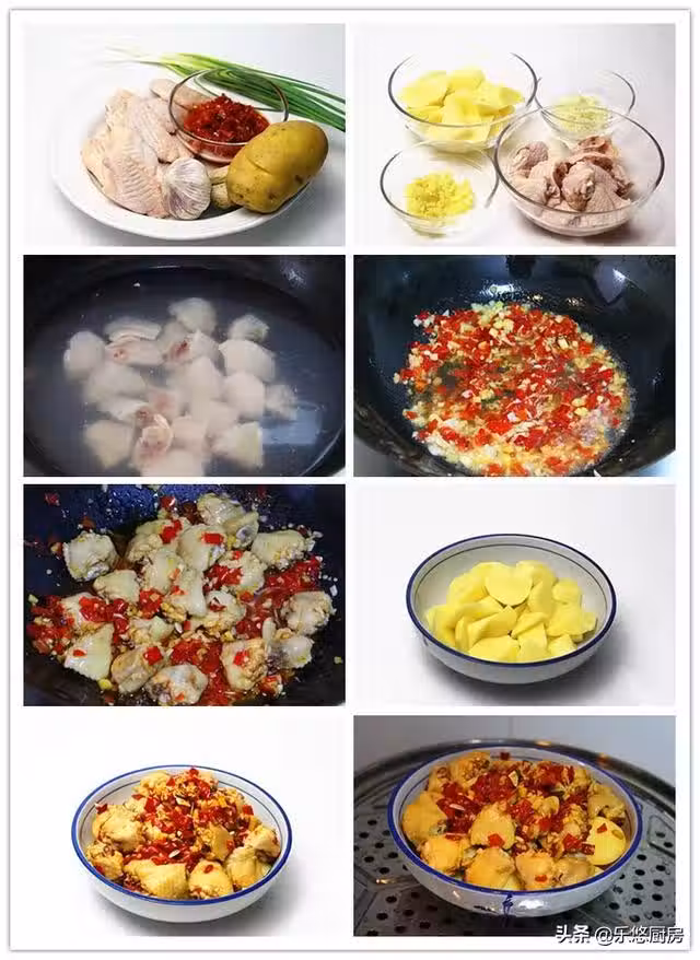 第八步:將整碗土豆雞翅放入蒸鍋中,大火蒸25分鐘。然後,吃的時候撒上少許香蔥碎即可。