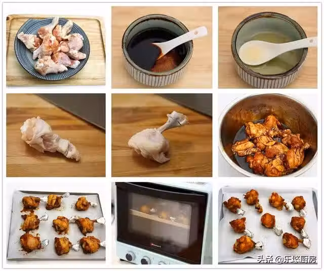 第八步:烤箱上下火210度,預熱10分鐘。然後把整盤雞翅根放入烤箱中層烤15分鐘,如圖。