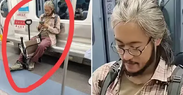 早上捷運遇「潮爆阿北」!白髮配球鞋狂敲手機...眾人「湊近一看」全體石化了