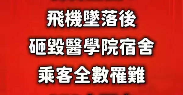 再傳墜機!飛機墜落後, 砸毀醫學院宿舍,乘客全數罹難,279人死亡!