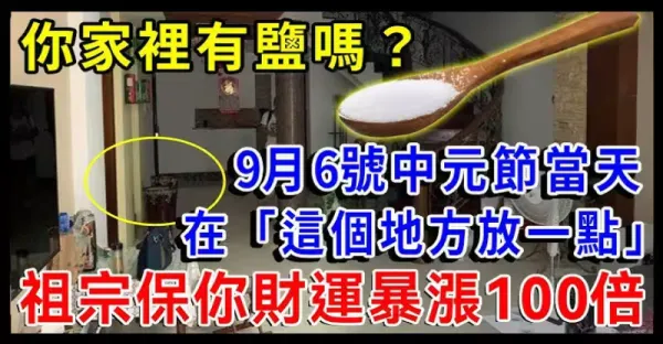 你家裡有鹽嗎?9月6號中元節當天,在「這個地方放一點鹽」,祖宗保你財運暴漲100倍