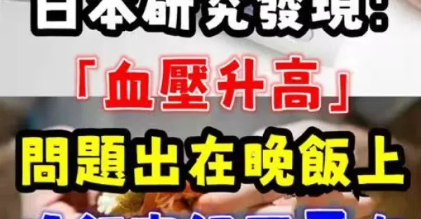 日本研究:血壓升高,問題出在晚飯上,提醒:晚飯牢記「兩不吃」!