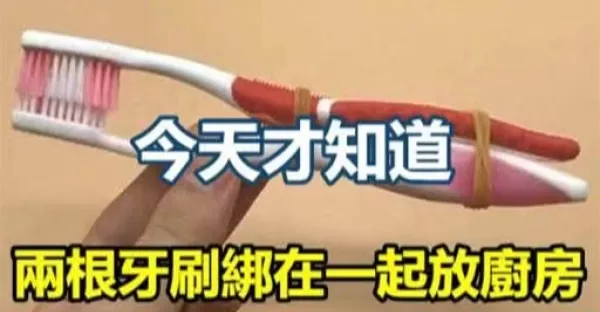 今天才知道,兩根牙刷綁在一起放在廚房,真聰明,一年省下好幾百塊錢!