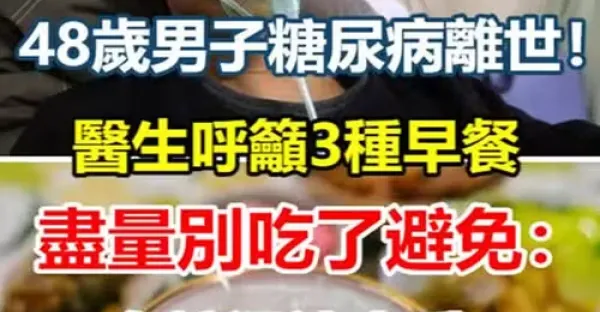 48歲男子糖尿病離世!醫生呼籲「三種早餐」儘量別吃了 避免: 血糖迅速上升!