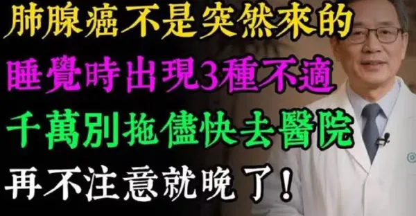 肺腺癌不是突然來的!睡覺時身體若有3種「怪象」,千萬別拖儘快去醫院, 再不注意就晚了!