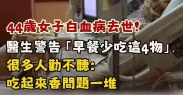 44歲女子白血病去世了!!醫生警告「早餐少吃這4物」很多人勸不聽: 吃起來香問題一堆!