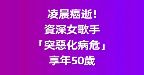 凌晨癌逝!!! 資深女歌手「突惡化病危」享年50歲 昔勇敢「公開坎坷經歷」丈夫悲慟:趕去還是來不及