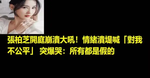 張柏芝開庭崩潰大吼!情緒潰堤喊「對我不公平」 突爆哭:所有都是假的