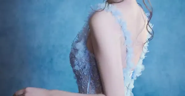 毛曉慧一襲藍色禮裙清冷精緻