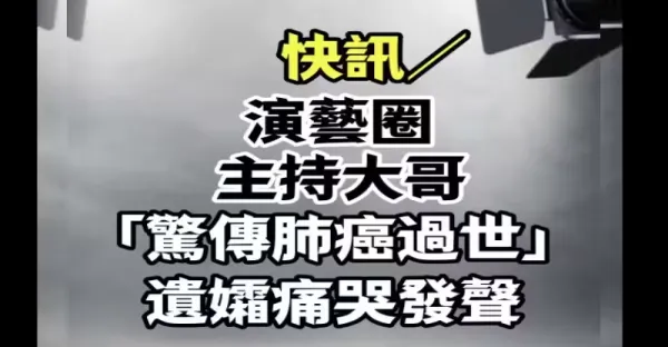 快訊/ 演藝圈主持大哥 「驚傳肺癌過世」 遺孀痛哭發聲