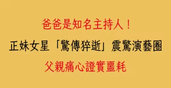 爸爸是知名主持人!正妹女星「驚傳猝逝」震驚演藝圈 父親痛心證實噩耗
