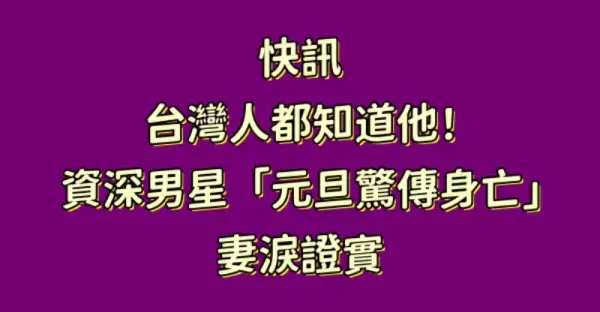 快訊/台灣人都知道他!資深男星「元旦驚傳身亡」妻淚證實