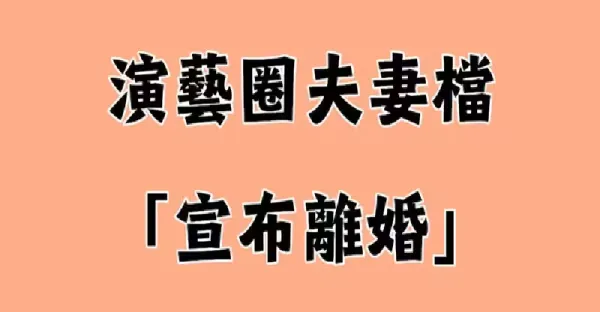 元旦震撼彈!演藝圈夫妻檔「宣布離婚」20年恩愛形象沒了
