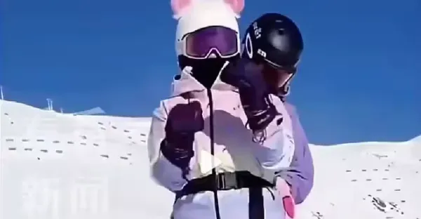 太可愛!全紅嬋新疆滑雪一幕曝光:背粉紅烏龜,曬花式摔跤萌翻了
