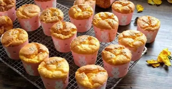 6個雞蛋做了21個紙杯蛋糕,南瓜口味,低油低糖,孩子吃正合適