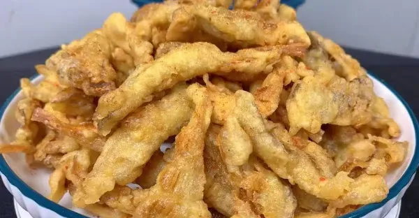 炸蘑菇,用麵粉還是澱粉?大廚教你3招,焦香酥脆,不回軟不油膩