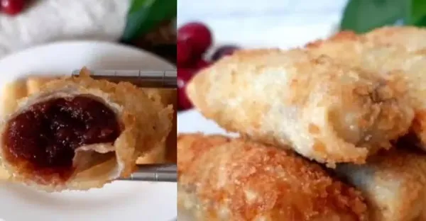 用剩餃子皮做傳統「豆沙春卷」,香甜酥脆,一盤上桌不夠吃!