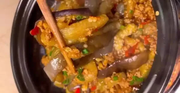 茄子炒肉末耗油?教你個實用的辦法,焦香入味不油膩,非常下飯!