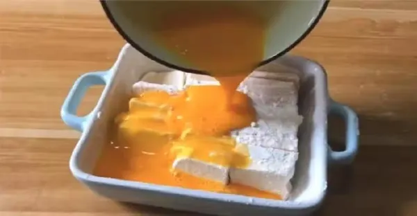 把雞蛋倒豆腐上,2步就做好一盤菜,沒想到這麼好吃,全家都沒吃夠,新年又多了一道拿手菜