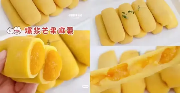 免烤箱❗️一口就爆漿芒果麻薯👏軟糯香甜巨好吃
