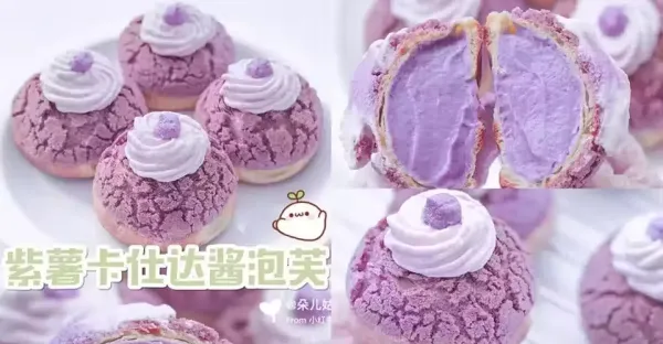 一次成功‼️有顏有料超好吃,【紫薯卡仕達泡芙】