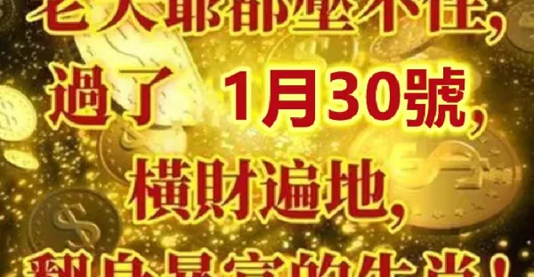 明天1月30號,橫財最旺的六生肖!