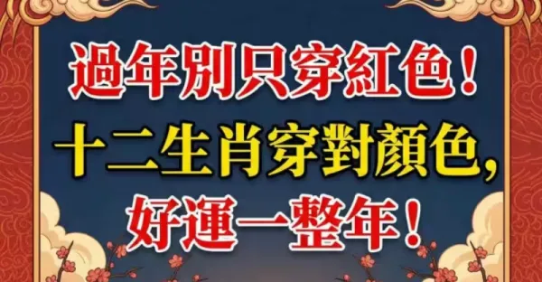過年別只穿紅色!!! 十二生肖穿對顏色, 好運一整年