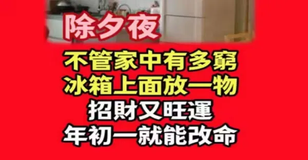 除夕夜,不管家中有多窮,冰箱上面放一物,相當於請了5個財神爺!大年初一就能改命!