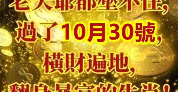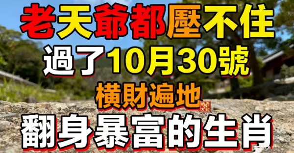 老天爺都壓不住, 過了10月30號 橫財遍地,翻身暴富的生肖…