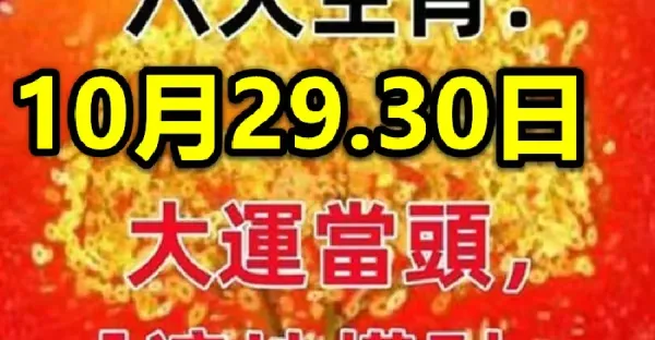 10月29.30日:大運當頭,旺到「 遍地橫財 」的六大生肖