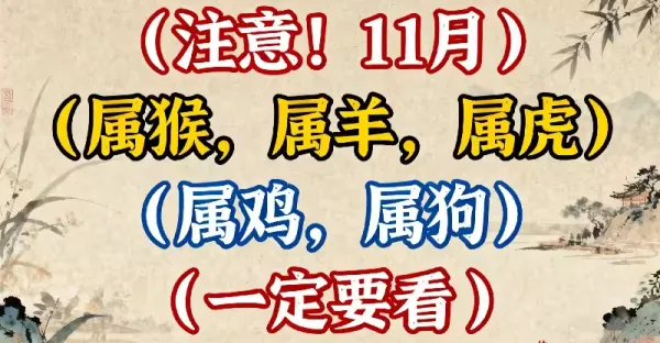 注意!11月屬猴、屬羊、屬虎、屬雞、屬狗一定要看!