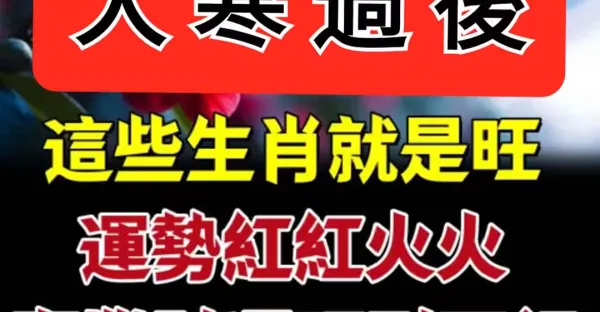 運勢轉旺! 大寒過後 六生肖 「運勢紅紅火火 」事業財運旺旺