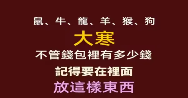 「鼠、牛、龍、羊、猴、狗」大寒,不管錢包里有多少錢,記得要在裡面放這樣東西,第2天就會有橫財